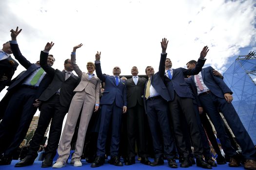 2. Presedintele Klaus Iohannis impreuna cu candidatii PNL pentru alegerile europarlamentare din 26 mai 2019 saluta participantii la mitingul PNL, desfasurat in Piata Victoriei din Bucuresti, sambata, 18 mai 2019. ANDREEA ALEXANDRU / MEDIAFAX FOTO