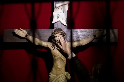 1. O femeie atinge o statuetă reprezentându-l pe Iisus la finalul Sfintei Liturghii solemne după intenţiile Sfântului Părinte Papa Francisc şi pentru reuşita vizitei Sale Apostolice în România, la Catedrala Sfântul Iosif din Bucureşti, miercuri, 15 mai 2019. Sfântul Părinte Papa Francisc va vizita România în perioada 31 mai – 2 iunie. ANDREEA ALEXANDRU / MEDIAFAX FOTO