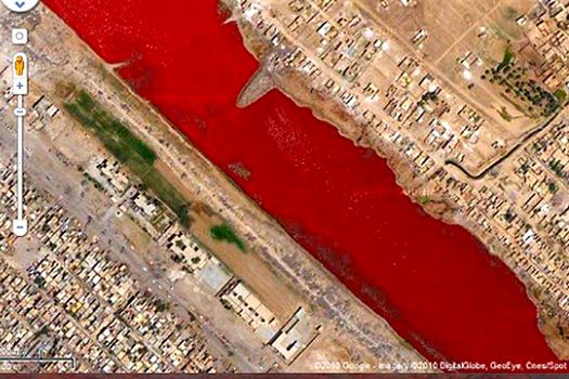 Chipul Mântuitorului Iisus Hristos proiectat pe un câmp din Ungaria şi un lac sângeriu din Iraq se află printre imaginile surprinzătoare oferite de Google Maps.