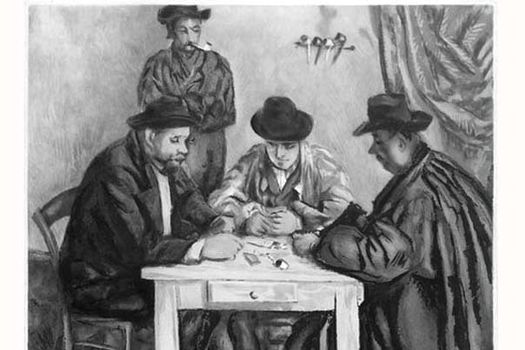 Paul Cézanne a realizat, între 1890 şi 1896, cinci versiuni diferite ale tabloului „Joueurs de cartes”.