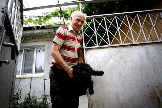 Îi spun că, practic, este vedetă de film şi că Porumboiu a luat premii cu el. Râde cu poftă şi o cheamă pe căţeluşa Saşa – care o însoţeşte pe tanti Olaru în film la cumpărat portocale – ca să o prezinte.