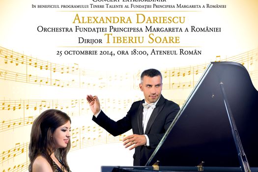 Pianista Alexandra Dăriescu şi orchestra Fundaţiei Principesa Margareta a României, sub bagheta dirijorului Tiberiu Soare, concertează pe scena Ateneului Român sâmbătă, de ziua Regelui Mihai I, pentru susţinerea programului "Tinere Talente", potrivit unui comunicat.