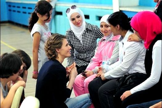 În alte fotografii apare soţia sa, Asma, discutând cu un grup de adolescenţi.