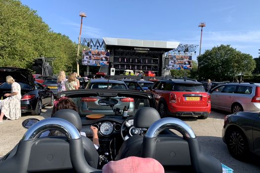În public, VIP-urile au stat câte patru în maşinile parcate în faţa scenei, aşa numitele ‘uber boxes’ puse la dispoziţie de organizatori. Clasa de mijloc s-a aşezat imediat în spatele lor, însă ei şi-au adus maşinile de acasă şi au plătit 100 de lire pe autoturism. Toţi au fost serviţi în timpul spectacolului cu îngheţată, ciocolată şi băuturi. Şi-au reglat radiourile din maşini pe aceeaşi frecvenţă, deşi unii au preferat să stea cu geamurile deschise, şi să audă direct de pe scenă.