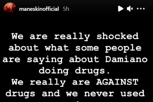 „Suntem şocaţi să aflăm ce părere au unii oameni despre Damiano, cum că ar consuma droguri. Suntem chiar ÎMPOTRIVA drogurilor şi nu am consumat niciodată cocaină. Suntem dispuşi să ne lăsăm testaţi, nu avem nimic de ascuns”, au scris membrii trupei pe contul oficial de Instagram.