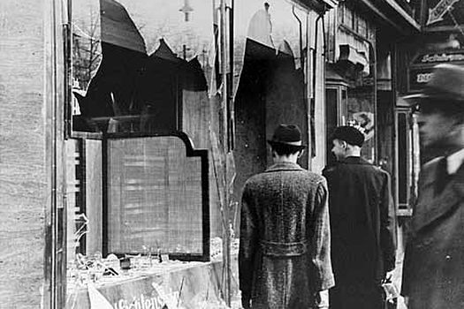 1938 – Kristallnacht, eveniment considerat începutul Holocaustului. În toată Germania, au fost incendiate peste 200 de sinagogi, magazinelor evreieşti le-au fost sparte geamurile (ceea ce a dat numele de Kristallnacht, „noaptea sticlei sparte”), mulţi evrei au fost agresaţi fizic, peste 7.000 de oameni de afaceri evrei au fost atacaţi, cărţile religioase ale comunităţii evreieşti au fost arse în public, 91 de evrei au fost ucişi, iar peste 30.000 arestaţi şi trimişi în lagăre de concentrare.
