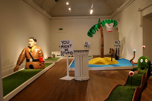 Cea mai recentă operă semnată de controversaţii fraţi Jake şi Dinos Chapman, expusă într-o galerie din Lancashire, a fost considerată „lipsită de gust” şi „fără niciun fel de valoare artistică”. Lucrarea fraţilor Chapman îl prezintă pe Adolf Hitler sub forma unui ornament pentru jocul de mini-golf, având o gaură ce permite trecerea mingii de golf. Curatorul galeriei susţine că opera în cauză are scopul de a îl „ridiculiza” pe dictatorul nazist.