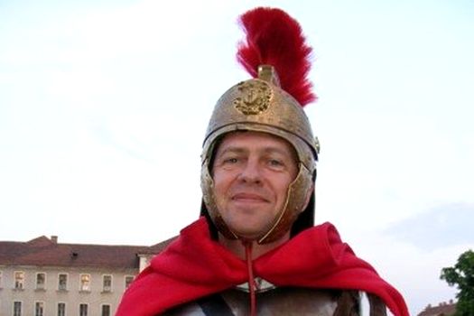 Costumat în centurion roman, directorul Muzeului Naţional al Unirii din Alba Iulia, Gabriel Rustoiu, a spus şi el o parte din istoria romană a oraşului şi modul de organizare a vechiului castru roman.