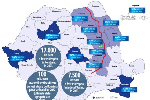 Când România a intrat în Uniunea Europeană, toată discuţia era că fondurile europene vor reduce decalajele care erau vizibile şi atunci între regiunile României. Doar că la 17 ani de la aderare, sunt judeţe în România care nu au nivel de dezvoltare la nici măcar jumătate din media naţională şi nu au reuşit să atragă banii investitorilor străini.