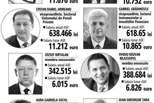 Ziarul Financiar a luat la puricat declaraţiile de avere ale celor 8 membrii ai Consiliului Autorităţii de Supraveghere Financiară. Sunt oamenii care sunt responsabili de supravegherea burselor, pensiei tale private şi asigurărilor. Salariile sunt cuprinse între 6.000 şi 11.600 de euro. Gospodari, au case, maşini scumpe şi terenuri. Doar doi dintre aceştia au investiţii pe piaţa bursieră. Şi cu economiile stau bine. Există depozite bancare chiar şi de 1,6 milioane de lei. Aparţine Aurei Socol, membru executiv cu salariu lunar de 6.000 de euro.