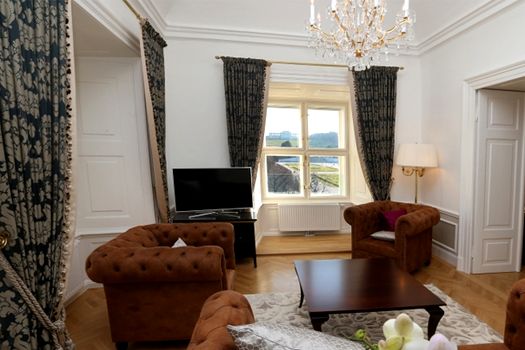 Spaţiul de cazare, care are o suprafaţă de 167 metri pătraţi, este inclus pe lista reşedinţelor exclusiviste din Europa si poate fi deja rezervat de cei interesati. Apartamentul are două dormitoare, două băi, salon, sufragerie şi o chicinetă cu interioare decorate în auriu, alb şi negru, dotate cu obiecte realizate manual şi inspirate de castelul imperial.