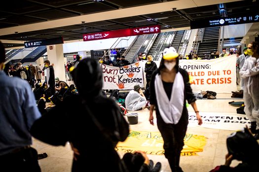 Activiştii sunt şi ei nemulţumiţi de noul aeroport pentru că poluează. Aşa că au protestat îmbracaţi în…pinguini.