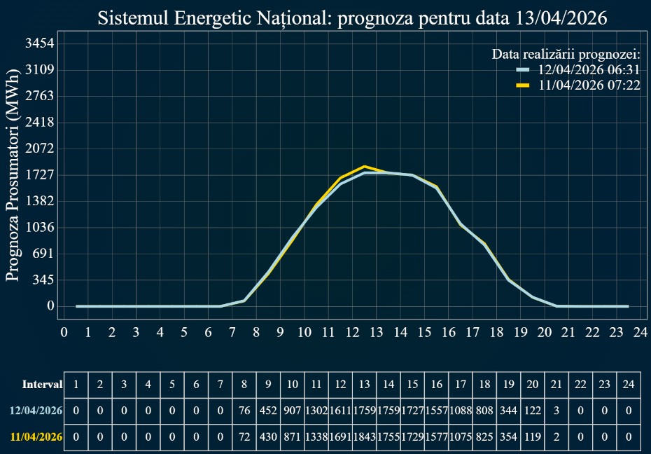 „Pentru prima zi de Paște, estimăm un consum minim de aproximativ 2.000 MW, în condiții de cer senin la nivel național. În situația unei nebulozități mai ridicate și a apariției precipitațiilor în zone dens populate, consumul poate crește cu până la 500 MW în a doua parte a zilei. Pentru a doua zi de Paște, pe fondul unei vremi ușor mai calde, estimăm un consum minim de circa 2.300 MW, cu posibilitatea de creștere în funcție de evoluția condițiilor meteo”, conform unei informări a Transelectrica din 11 aprilie.