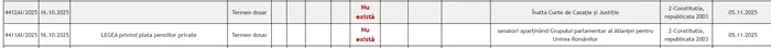 Detaliile adăugate vineri arată că este vorba de dosarele deschise la cele două sesizări, iar termenul stabilit pentru a fi analizate este 5 noiembrie.