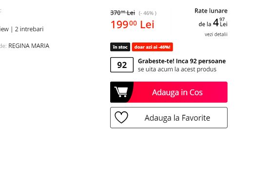 Voucherul este redus de la 370 lei, la 199  (- 46% ), i-ar pentru a-l achiziţiona se pot face şi rate lunare.