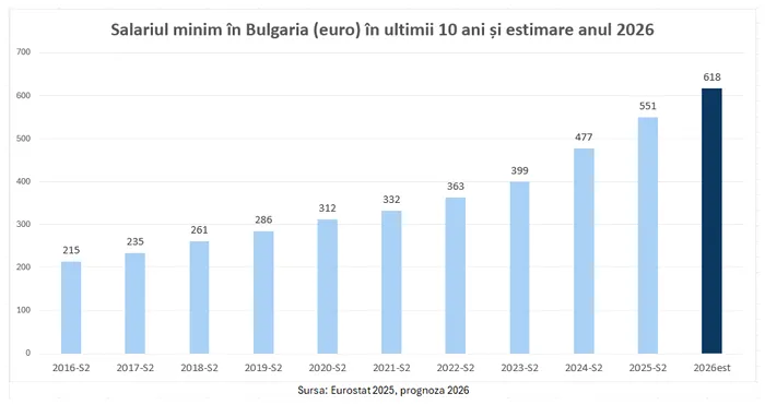 A adoptat explicit pragul de 50% din salariul mediu ca referință legală pentru salariul minim, iar această țintă a fost atinsă deja în anul 2024. Circa 430.000 de salariați (cca 14% din angajați) sunt remunerați la salariul minim în Bulgaria. În ultimii 10 ani, salariul minim brut în euro a crescut cu 156%. Patronatele cer modificarea formulei. Sindicatele bulgare cer menținerea acesteia, ceea ce ar implica un salariu minim de circa 618 euro în anul 2026 (plus 12,2%).