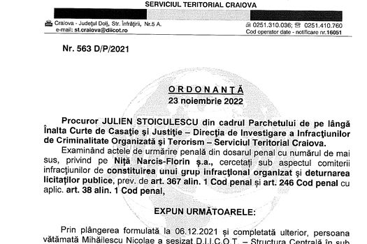 Acuzaţiile din dosar sunt de constituire de grup infracţional şi de deturnare de licitaţiii publice, fapte pedepsite cu ani gre de închisoare. Plângerea iniţială a fost formulată pe 6 decembrie 2021 de Nicolae Mihăilescu.