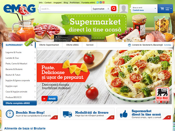 De la începutul anului, eMAG a mai lansat trei categorii noi: Auto, Sport şi Activităţi în aer liber şi Food (Supermarket direct la tine acasă), în parteneriat cu Mega Image.