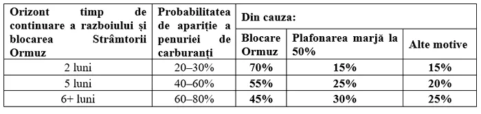 Descompunerea riscului pe cauze (Ormuz +. plafonare). Procentele sunt contribuții aproximative la riscul total estimat anterior de AEI