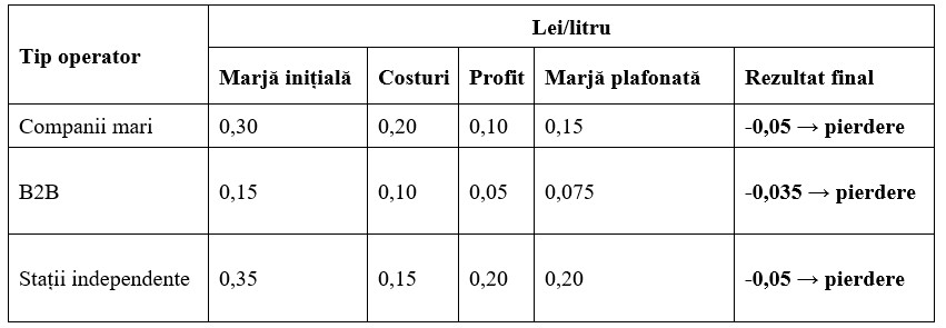 Astfel măsura propusă privind plafonarea nu reduce profitul – îl elimină și îl transformă în pierdere.
