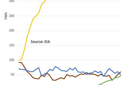 Numai sectorul nuclear produce 379,5 TW/oră, pe când hidrocentralele produc 60,0 TW/oră.