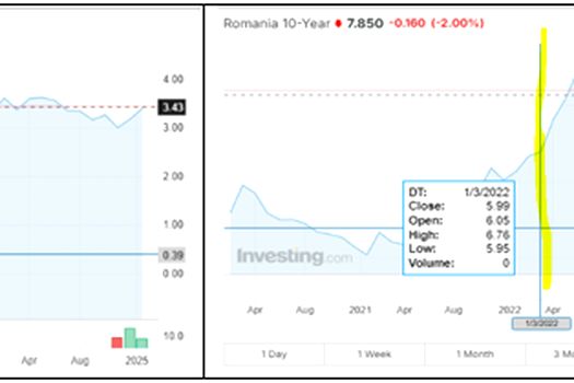 Randamentele la obligaţiuni emise pe 10 ani în 4 ţări aflate la graniţa cu războiul au crescut substanţial la momentul invaziei Rusiei şi au rămas sus, cu mici volatilităţi. Creşterea a fost cuprinsă între 100 şi 200 puncte de bază. La o estimare simplă, aceasta a condus la o creştere a cheltuielilor suplimentare cu dobânzile la datoria guvernamentală (martie 2022 – decembrie 2024) de 3 miliarde euro în cazul României, 3,4 miliarde euro în cazul Slovaciei, 7,8 miliarde euro în cazul Ungariei şi 14,4 miliarde euro în cazul Poloniei. O modificare a perspectivei / ratingului exact în momentul în care se vorbeşte despre soluţionarea conflictului din Ucraina, nu este o acţiune prociclică, care va prelungi în ţările de graniţă efectele economice negative ale războiului şi dincolo de încetarea lui?