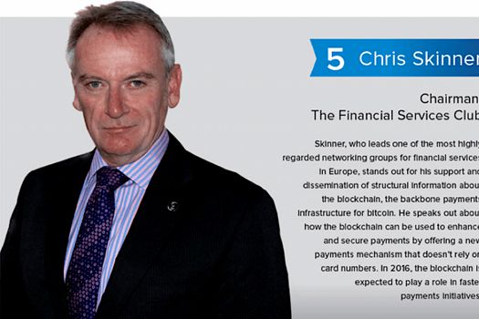 Cunoscut ca fiind un comentator independent al pieţei financiare şi Fintech, job-ul de zi cu zi al lui Chris Skinner este cel de Preşedinte al forumului european Financial Services Club.