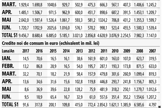 Cea mai mare parte a creditelor noi acordate în prima jumătate a acestui an, 99% din valoarea totală a împrumuturilor, echivalentul a 9,4 miliarde de lei, sunt în monedă locală, situaţie diferită de perioada 2007-2008, când mai mult de jumătate din finanţările pentru consum se acordau în euro.