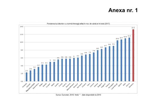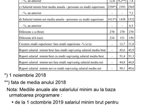 Totodată, propunerea este de introducere în Codul Muncii a unui prag minim al raportului salariu de bază minim brut pe ţară garantat în plată/ câştig salarial mediu brut la cel puţin 45%, începând cu 2020.