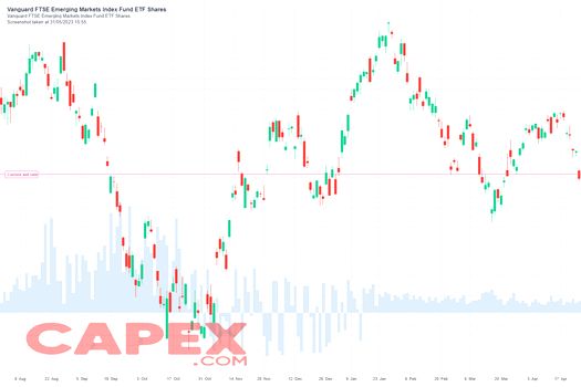 Vanguard FTSE Emerging Markets ETF îţi permite să investeşti în acţiuni ale unor companii de pe pieţe emergente precum China, Taiwan, Brazilia şi Africa de Sud. Acesta urmăreşte îndeaproape randamentele indicelui ponderat FTSE Emerging Markets şi include aproximativ 3.550 de acţiuni ale unor companii cu capitalizare mică, medie şi mare.