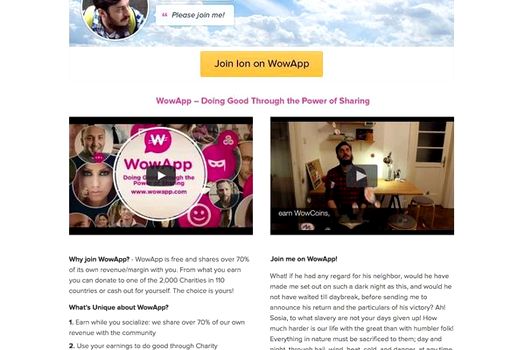 WowApp este o aplicaţie gratuită de comunicare digitală care îşi propune să dea înapoi utilizatorilor săi valoarea materială a timpului petrecut online. Sistemul revoluţionar care stă la baza WowApp constă în distribuirea profitului sau venitului obţinut din utilizarea aplicaţiei de către membrii săi. Peste 70% din câştigurile pe care WowApp le obţine din vânzarea spaţiului publicitar sau din apelurile plătite în alte reţele, fixe sau mobile, se întorc către utilizatori. Aceştia decid apoi ce vor face cu fondurile: le pot dona către ONG-uri sau le pot transfera în propriul cont bancar.