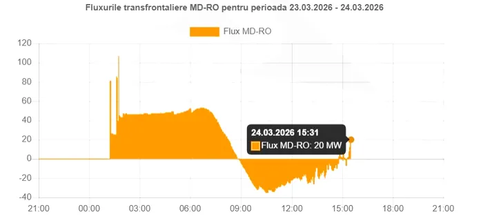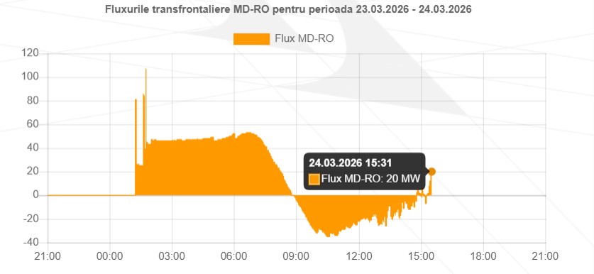 Începând cu ora 8:55 însă, pe fondul creșterii producției interne, Republica Moldova a început să exporte energie în România, cantitățile fiind, firește, reduse, cu un maxim de 35 MW în jurul orei 10:30.