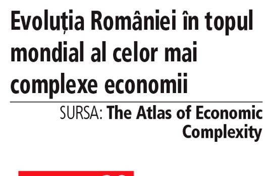 România ocupă locul 20 în clasamentul celor mai complexe economii ale lumii, clasament realizat de prestigioasa universitate americană Harvard, care analizează 145 de ţări. La vârf stau Japonia, Coreea de Sud şi Elveţia.