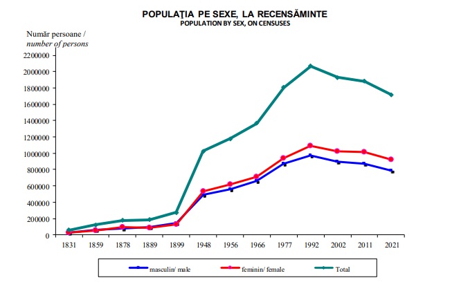 Alți 61 de ani mai târziu, conform celui mai recent anuar al Capitalei, pentru anul 2024, al INS , populația Capitalei a ajuns la 1,71 de milioane de locuiori, în scădere constantă începând din 1992, când a ajuns la un vârf de 2,06 milioane de locuitori.
