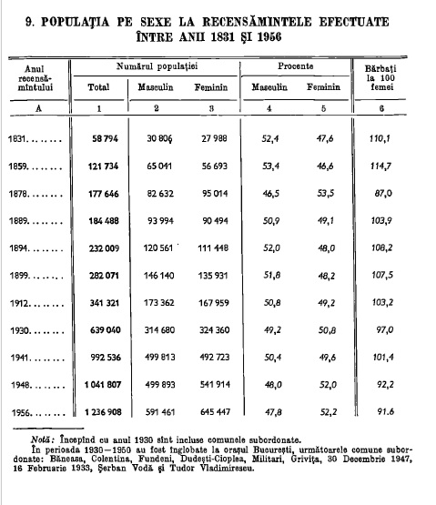 Derulând pe repede înainte 68 de ani, până la ediția din 1963 a anuarului statistic al Bucureștiului, se poate observa creșterea masivă a populației. Este vorba de o avans de peste cinci ori a numărului de bucureșteni de la recensământul din 1894 până la cel din 1956, cel mai recent dinaintea acestei ediții.