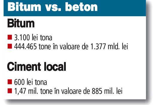 Peste 90% din bitumul utilizat în asfaltarea noilor autostrăzi şi drumuri expres provin din import, motiv pentru care şi preţul acestuia este mai ridicat, având în vedere că şi camioanele care îl transportă stau blocate cu orele în punctele de trecere vamală.