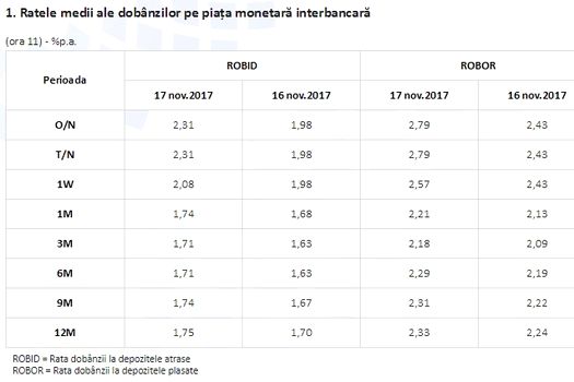 La începutul acestui an, ROBOR la trei luni era cotat la 0,87%, iar din septembrie a început să urce, trecând pragul de 1%, apoi în 15 noiembrie a trecut şi pragul de 2%.