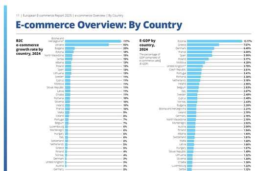 Potrivit celui mai recent raport European, comerțul electronic din România s-a dezvoltat rapid, fiind așteptat să atingă 3,5% din Produsul Intern Brut (PIB) până la sfârșitul anului. Cu această performanță, România urcă pe locul 9 în Uniunea Europeană în clasamentul care stabilește ponderea e-commerce-ului în economie și se clasează pe locul 3 în Europa Centrală și de Est, după Polonia și Cehia.