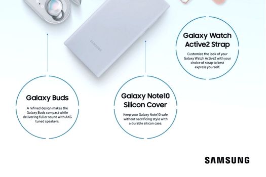 În Premium Package sunt incluse: un smartphone Galaxy Note 10, un ceas inteligent Galaxy Watch Active2 şi curele de rezervă, o pereche de căşti wireless Galaxy Buds şi o carcasă de silicon originală pentru telefon.
