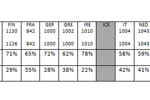După cum se poate vedea din tabel, susţinerea pentru a rămâne în UE este ridicată în ţări precum Bulgaria (80 la sută), Germania (72%), Finlanda (71%) sau Spania (68%), în timp ce procente mai mici se înregistrează în Suedia (53 la sută) sau Franţa (55 la sută).