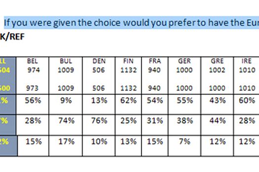 Astfel, la întrebarea „Dacă aţi putea să alegeţi, aţi prefera ca moneda ţării să fie euro sau moneda naţională?, rezultatele sunt următoarele: