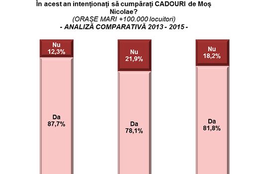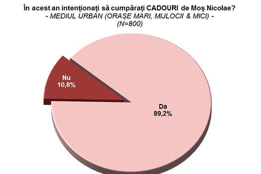 Anul trecut, mai puţin de 80% dintre locuitorii oraşelor mari îşi exprimau intenţia de a cumpăra cadouri de Moş Nicolae.