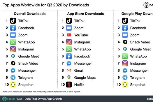 Ca număr de descărcări, tot TikTok conduce clasamentul, urmată de Facebook şi de noua senzaţie din pandemie, Zoom, care ia faţa unor aplicaţii mult mai populare, ca Instagram sau Whatsapp.