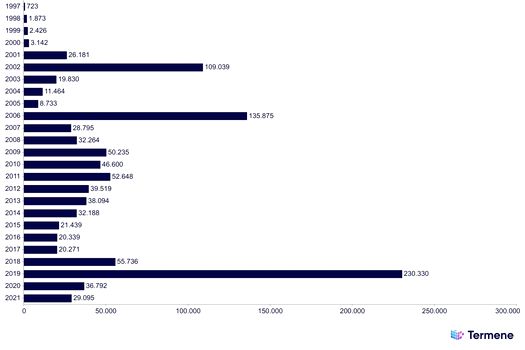 Media anuală a fost în acest interval de 34.000 de firme închise, dar în 2019 au fost radiate 230.330 de firme, în 2006 un număr de 135.875, iar în 2002 un total de 109.039 firme.