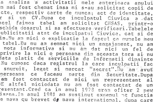 A avut poate certitudinea că, prin natura relaţiilor pe care le-a avut cu foştii ofiţeri ai Securităţii, dosarul său a fost distrus. Dar nu avea de unde să ştie un lucru, ori i s-a spus şi n-a înţeles: chiar dacă dosarul unui informator dispare, notele lui apar în dosarele persoanelor despre care informatorul le-a scris. Dacă ai turnat la Securitate, e imposibil ca, în cele din urmă, adevărul să nu iasă la iveală. Numai dacă nu cumva te protejează tocmai instituţia care ar trebui să te deconspire, Consiliul Naţional pentru Studierea Arhivelor Securităţii, adică. Dar nici aceasta nu o poate face la nesfîrşit.