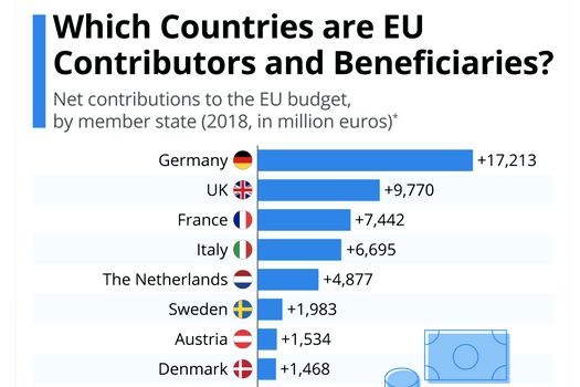 Pe de altă parte, contributorii majori ai bugetului UE sunt statele zgârcite (Olanda, Suedia, Austria, Danemarca), celelalte state mai mult obţinând bani de la UE decât să facă contribuţii, principalul contributor fiind totuşi Germania, dar pe poziţii fruntaşe fiind şi Franţa sau Italia.