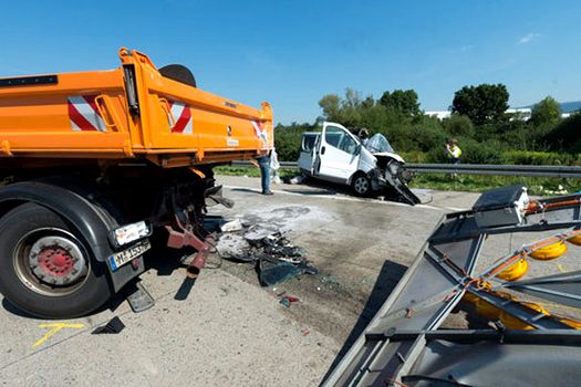 Pe un segment în care viteza maximă era limitată la 80 de km/h din cauza unor lucrări, şoferul unui microbuz în care erau români a lovit din spate un autocamion cu remorcă staţionat. Vehiculul pentru lucrări de întreţinere era staţionat legal în afara zonei de rulare, pe o bandă temporar închisă circulaţiei.