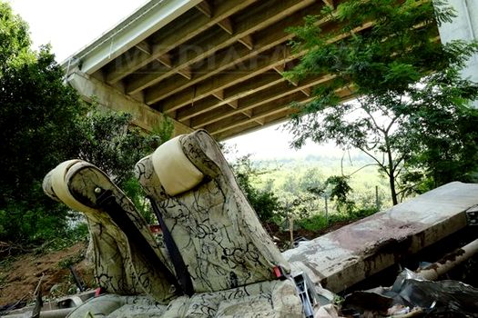 Apoi vehiculul a efectuat un veritabil zbor peste un pod rutier şi s-a prăbuşit de la 30 de metri. Mai mulţi pasageri au fost aruncaţi din vehicul.