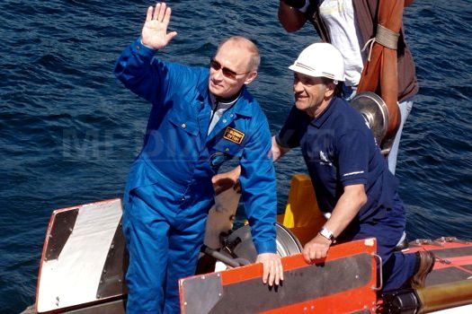 Premierul rus, Vladimir Putin, s-a scufundat, anul trecut, la bordul aceluiaşi submersibil, pe fundul Lacului Baikal. Prin asemenea acţiuni insolite, el a câştigat numeroşi susţinători, în special femei. Între altele, a fost copilotul unui bombardier, a călătorit la bordul unor submarine şi a condus diferite vehicule. De asemenea, a fost surprins de camerele de luat vederi în timp ce călărea, pescuind fără cămaşă sau participând la identificarea prin marcaj a unui urs polar.