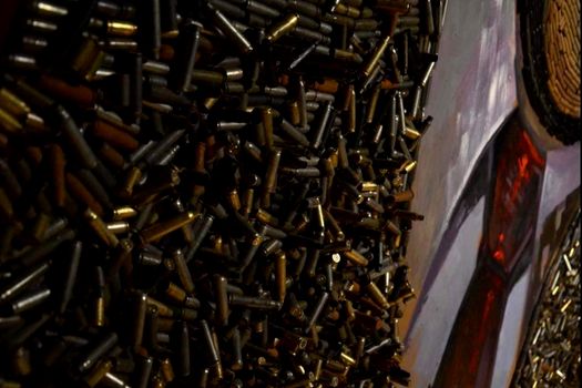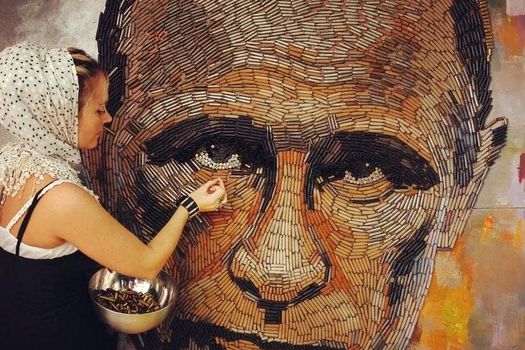 Tabloul cu chipul lui Putin este compus din resturi de gloanţe trase în estul Ucrainei. 5.000 de cartuşe au fost strânse de către artistă în decursul a patru luni, cu ajutorul unor voluntari, în 2015.